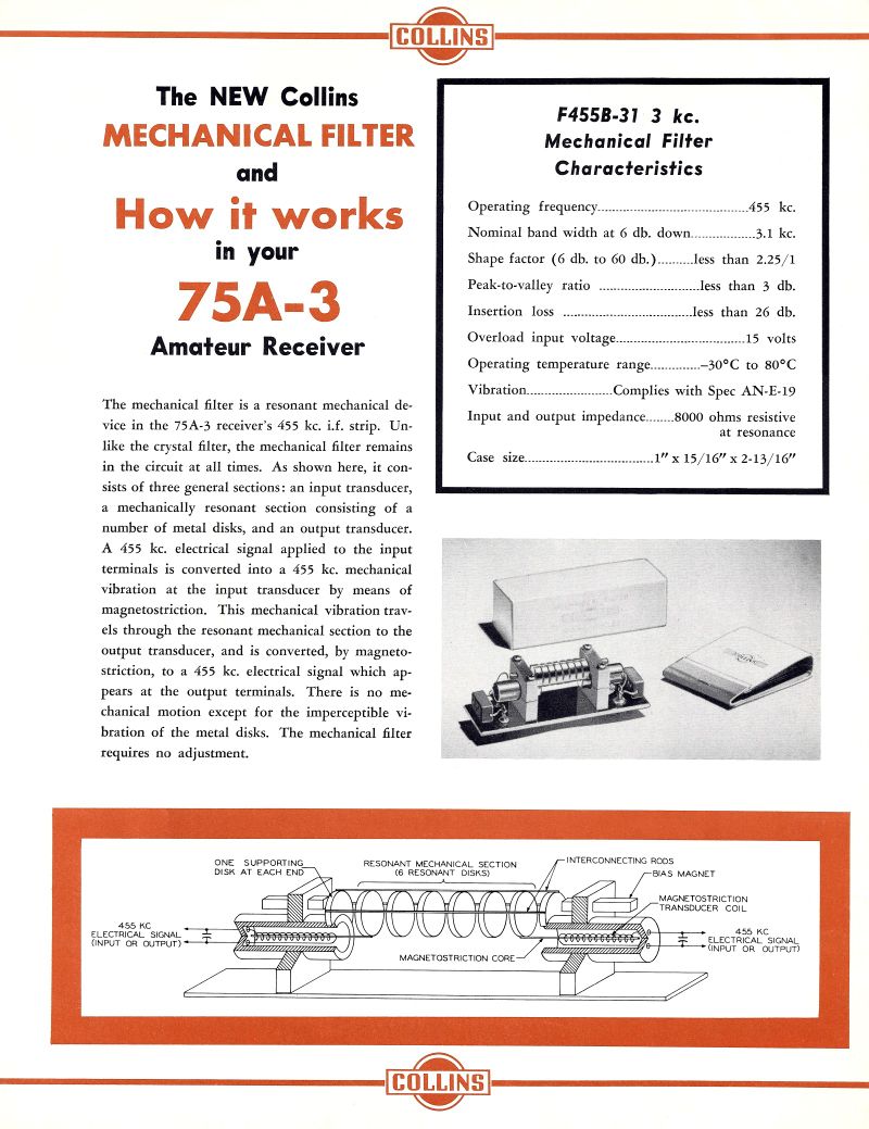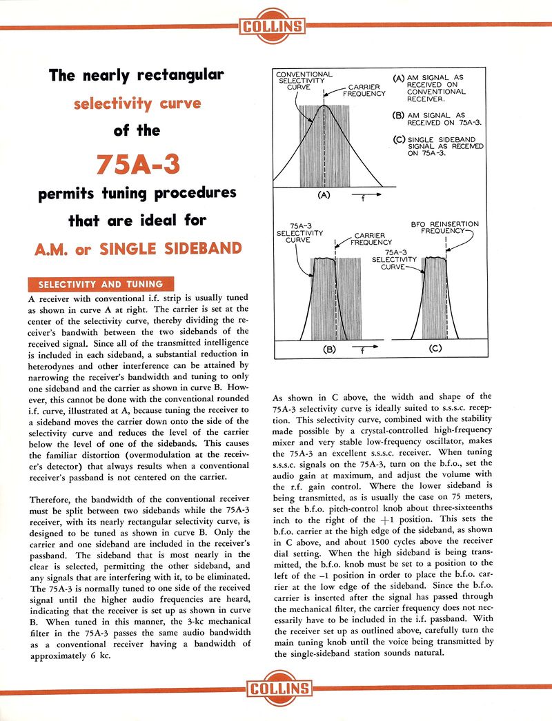 The 75A-3 is an HF (80, 40, 20, 15, 11 &10 meter band) Amateur Radio Receiver. It uses a Permeability Tuned Oscillator as the RF source and a Mechanical Filter for selectivity.