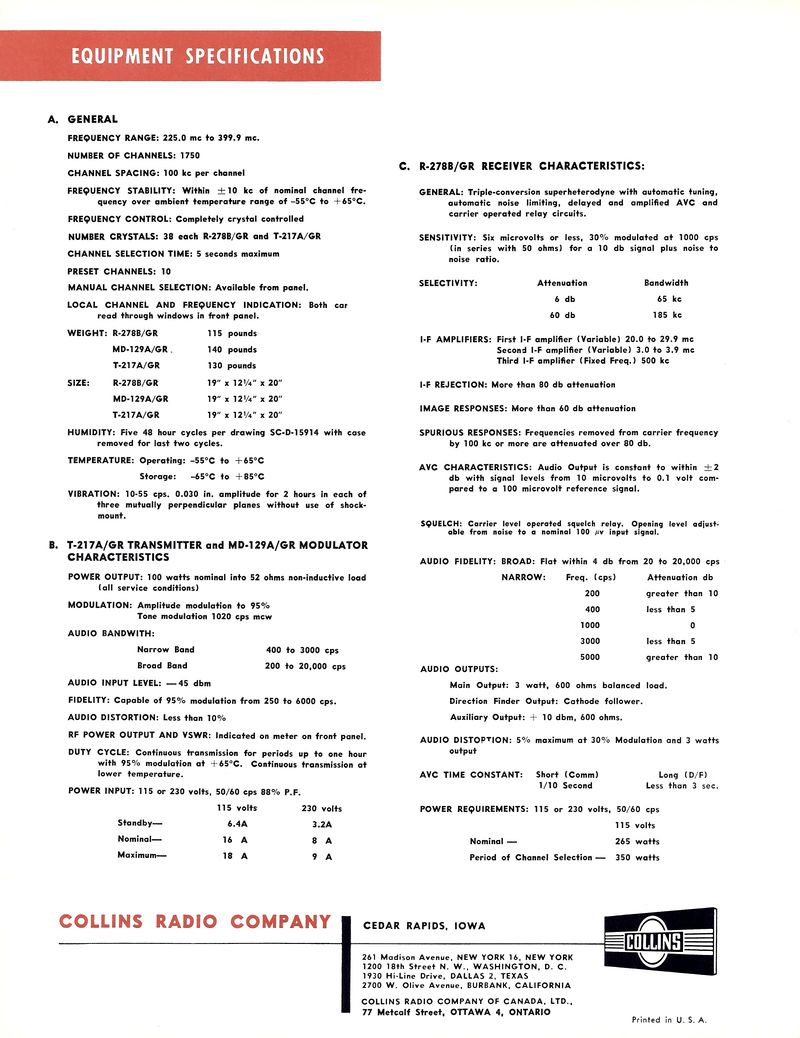 The GRC-27 is a UHF (225-399.9 mc) Communications System. The Transmitter is a T-217A/GR and the Receiver is an R-278B/GR. Included is two antennas: AT-197/GR Omni and AS-505/GR four-bay vertical.