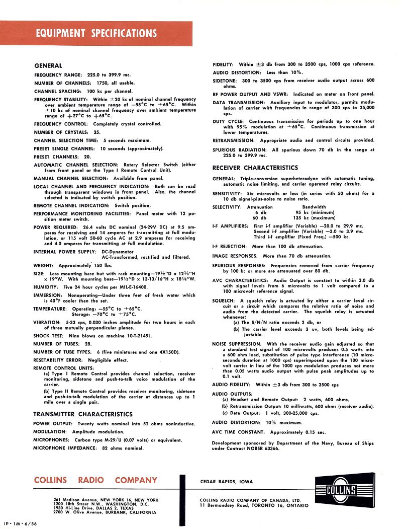 The URC-9 is a UHF (225-399.9 mc) 20 Watt Transmitter/Receiver Set enclosed in a single chassis.